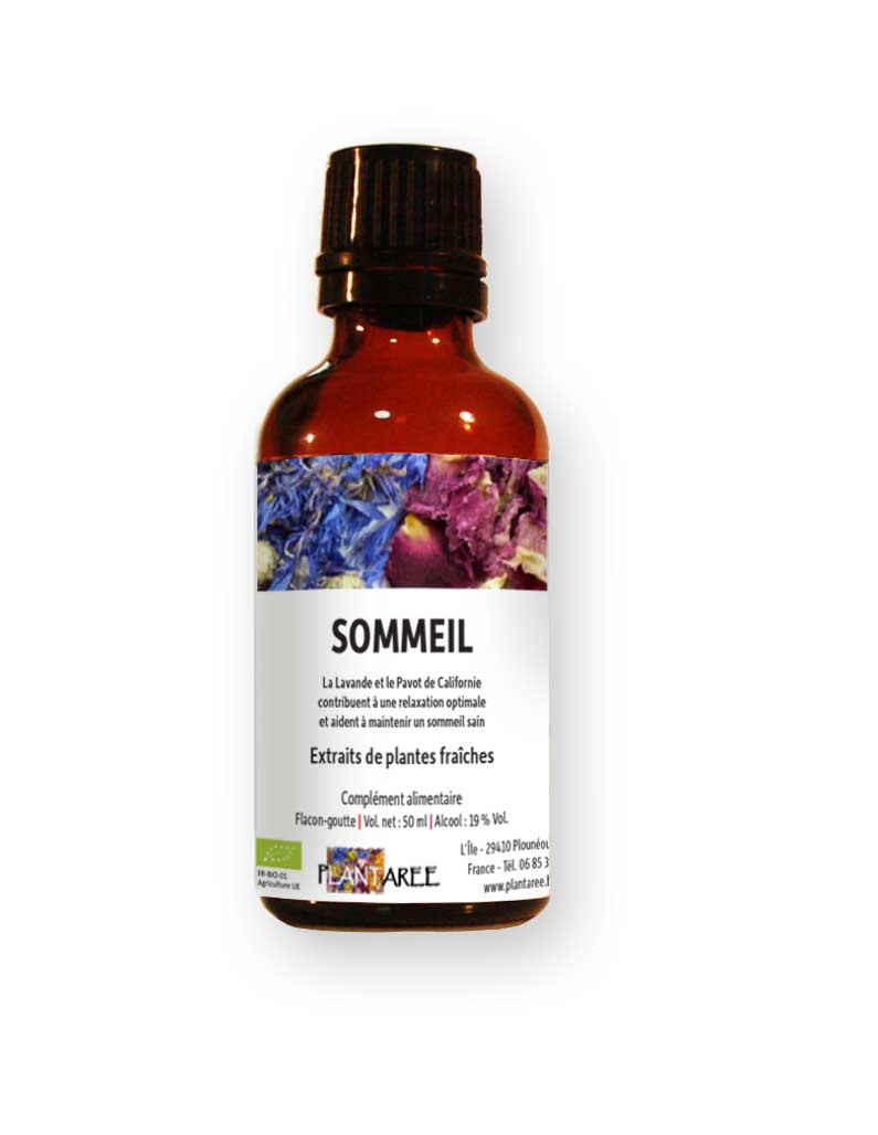 Action : Pour un sommeil sain, serein et bien régulé, la Mélisse, relaxante, la Camomille, antispasmodique et calmante et l’Eschscholtzia, anxiolytique vont permettre d’équilibrer le système nerveux. L’Avoine, par ses minéraux et ses vitamines B, améliore le fonctionnement du système nerveux autonome. Un bon sommeil se préparant le jour, nous recommandons de prendre la préparation le matin et en fin d’après-midi. Eviter également les repas lourds avant le coucher.
